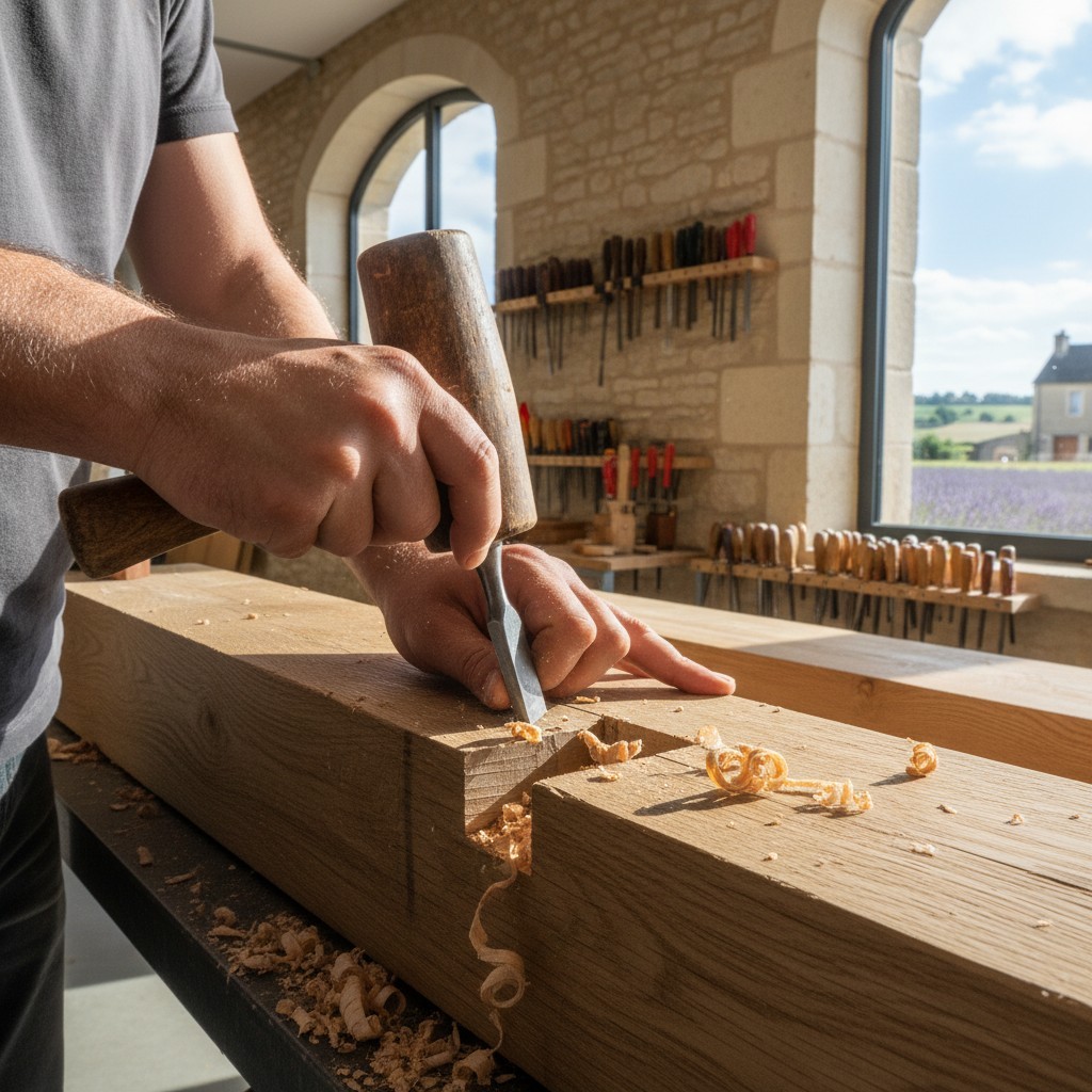 Nous intervenons pour la rénovation et l'entretien de vos charpentes existantes : traitement du bois, réparation de pièces endommagées, renforcement de structure. Nous assurons la pérennité de votre patrimoine.